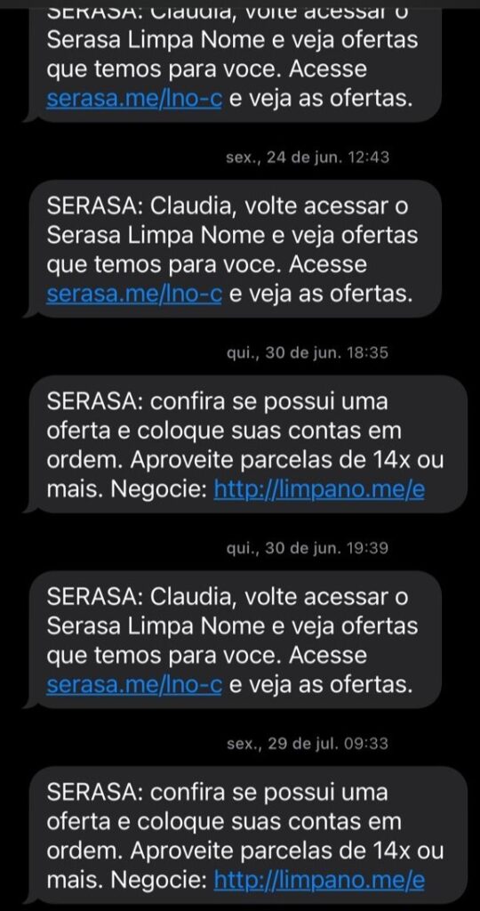Se você recebe uma dessas mensagens abaixo, GUARDE todas porque isso é uma prova muito importante para o processo de reabilitação do seu nome nas restrições internas, que só atrapalham a sua vida!