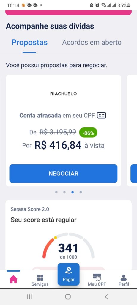 Que você consegue entrando no site www.serasaconsumidor.com.br, lá você terá que fazer um cadastro, colocar o seu e-mail, criar uma senha e você irá consultar tudo o que tem no seu nome, e tenho certeza que você recebe várias mensagens de empresas lhe convidando a fazer um acordo, como Bradesco, claro, Santander, etc. Essas mensagens são importantes e é necessário guardá-las!